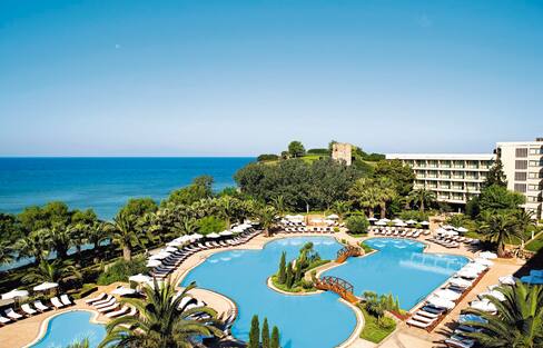 It’s all about the pools here – the hotel has a jaw-dropping 11. Great sea views top things off.